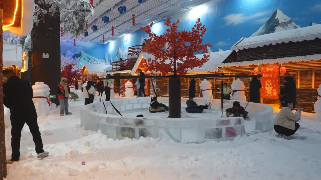 红满苑雪乡于大年初一正式迎客,成为本次春节假期的流量担当。不用远赴北方,在家门口就能邂逅冰雪浪漫,银装素裹的雪乡场景、趣味玩雪项目、拍照打卡点位一应俱全,吸引大批游客携娃体验。与此同时,红满苑道路两旁山茶花竞相绽放,冰雪与繁花相映成趣,形成“雪韵花香”的独特景致,游客们驻足拍照、打卡留念,朋友圈刷屏不断。